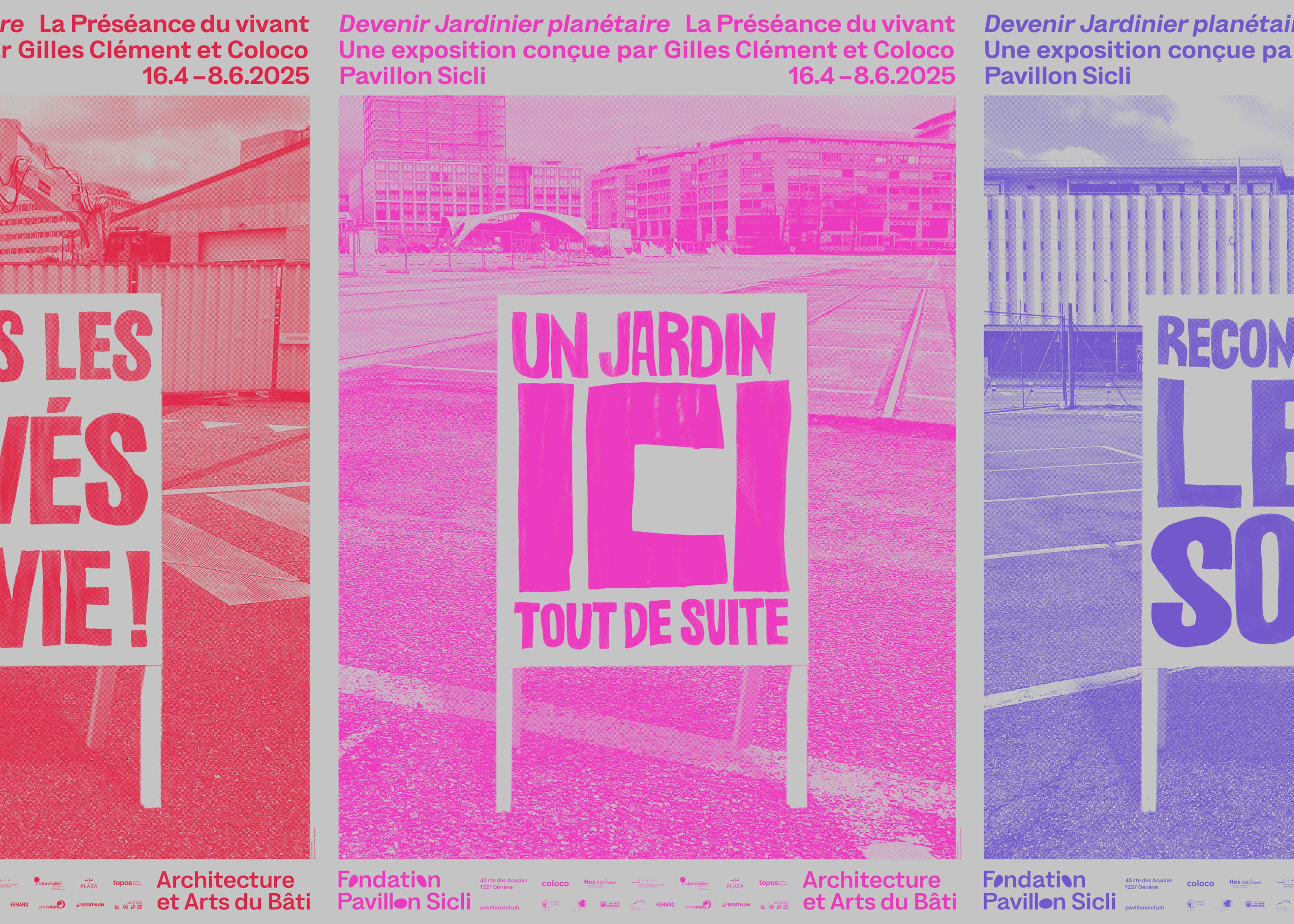 Conçue par les paysagistes Gilles Clément et Coloco, en collaboration avec le centre de formation professionnelle nature et environnement de Lullier, l’HEPIA et l’association Topos, cette exposition est adaptée et produite à Genève par la Fondation Pavillon Sicli. Elle établit des liens entre l’environnement bâti, la renaturation urbaine, notamment dans le PAV, les processus de décision et la place de l’humain dans son écosystème.